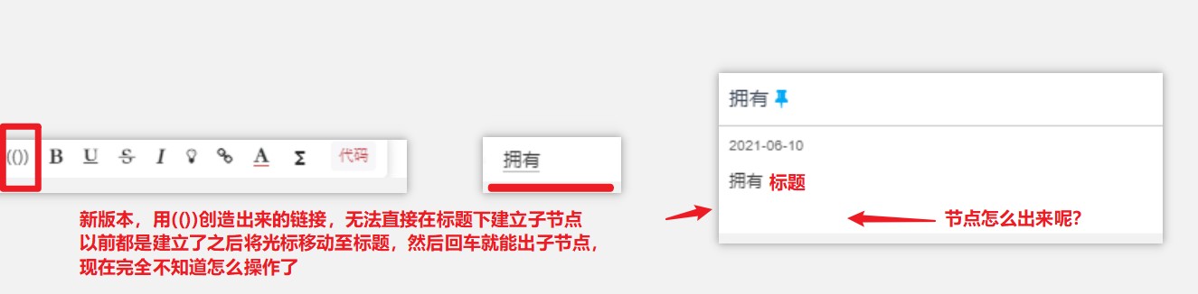 8.25 用(())创造出来的链接,无法创建子节点,完全打乱了工作流,求修复